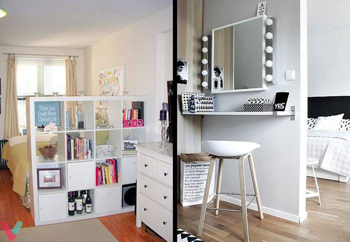 تقسیم اتاق به بخشهای مختلف راهی عالی برای جدا کردن محیط اتاق به فضاهای دنج است. لازم نیست که این بخش بندیها از ابتدا در اتاق وجود داشته باشد. میتوانید این تقسیم بندی را با قفسه و کمد انجام دهید.
