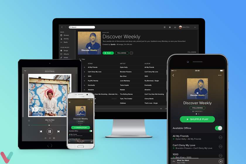 - اسپاتیفای بر روی تمامی دیوایسها قابل جرا است بنابراین کاربران هم میتوانند از اسپاتیفای دبر روی موبایل استفاده کنند یا آن را بر روی تبلت، کامپیوتر و حتی وب استفاده کنند.